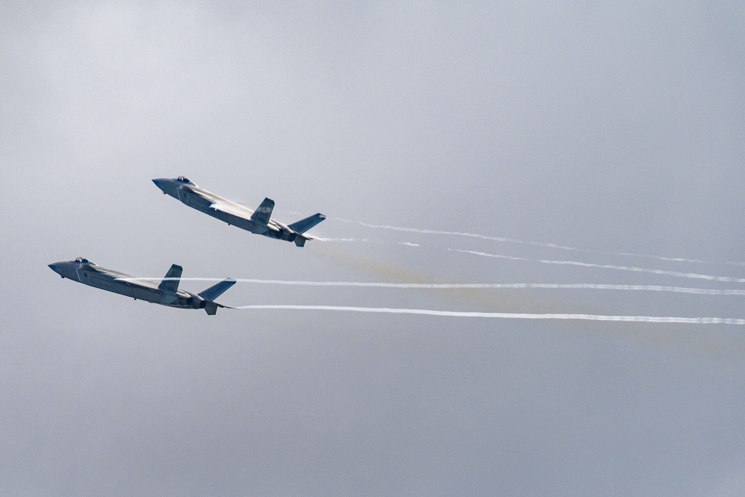 „One yesterday with overcast, and two today with sunny day!“, https://commons.wikimedia.org/wiki/File:Two_J-20s_at_CCAS2022_(20220827103603).jpg, von N509FZ, lizenziert unter CC BY-SA 4.0 – https://creativecommons.org/licenses/by-sa/4.0/deed.en. Bearbeitung: Keine.